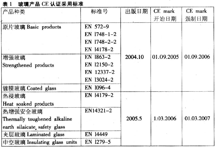 建筑玻璃CE認(rèn)證采用標(biāo)準(zhǔn)有支持性標(biāo)準(zhǔn)和一致性歐洲準(zhǔn)則(hENs)兩類,支持性標(biāo)準(zhǔn)有包括產(chǎn)品標(biāo)準(zhǔn)、產(chǎn)品特性標(biāo)準(zhǔn)、產(chǎn)品特性計(jì)算或測(cè)量方法標(biāo)準(zhǔn)等,這些支持性的標(biāo)準(zhǔn)由CEN 負(fù)責(zé)起草出版,CEN 標(biāo)準(zhǔn)出版后將取代所有成員國的國家標(biāo)準(zhǔn)。一致性歐洲準(zhǔn)則(hENs)是必需強(qiáng)制執(zhí)行的,這些準(zhǔn)則是相應(yīng)產(chǎn)品標(biāo)準(zhǔn)體系的一部分,通常是標(biāo)準(zhǔn)體系的最后一個(gè)部分,名稱一般為“第×部分×××產(chǎn)品一致性評(píng)價(jià)”(Part XEvaluation ofconformityProduct standard)。只有夾層玻璃例外,它是一個(gè)單獨(dú)的標(biāo)準(zhǔn)——“EN144492005 建筑玻璃——夾層玻璃和夾層安全玻璃——一致性評(píng)價(jià)方法”。不同玻璃產(chǎn)品CE 認(rèn)證采用的標(biāo)準(zhǔn),進(jìn)入歐洲市場(chǎng)的所有建筑玻璃產(chǎn)品必需遵守這些標(biāo)準(zhǔn)。