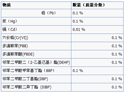 RoHS 2.0包括4項鄰苯在內(nèi)的10項有害物質(zhì)