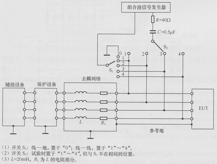 h.  浪涌要加在線一線和線一地之間。如果無特殊規(guī)定,則浪涌應(yīng)遂次加在每一根線與地之間,有時(shí)組合波形發(fā)生器要同時(shí)測(cè)試兩根或多根線對(duì)地情形,這時(shí)脈沖持續(xù)期可允許減