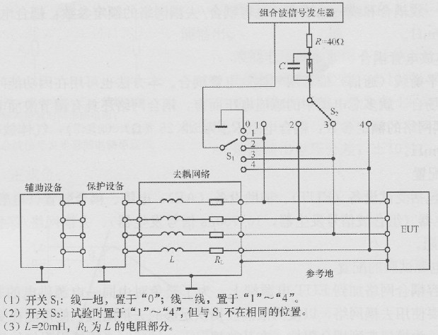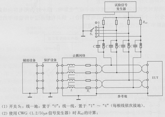 浪涌經(jīng)電容耦合網(wǎng)絡(luò)加到EUT電源端上,為了避免對(duì)由同一電源供電的非UET產(chǎn)生不利影響,需要使用去耦網(wǎng)絡(luò),以便為浪涌波提供足夠的去耦阻抗,使得能在受試線路上形成規(guī)定的波形。為模擬典型輞合阻抗,在某些情況下,試驗(yàn)時(shí)必須使用附加的規(guī)定電阻。